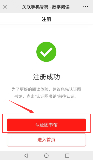 2、输入手机号码并获取验证码后,点击“关联手机号”,→点击“认证图书馆”→点击“图书馆微信认证”。