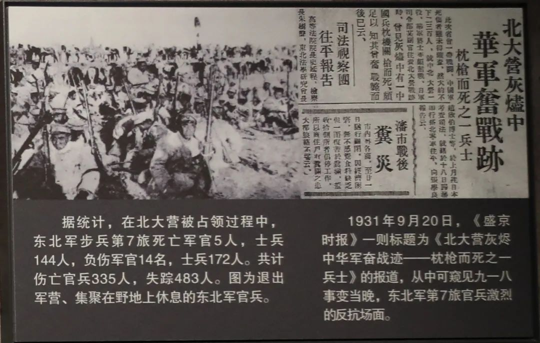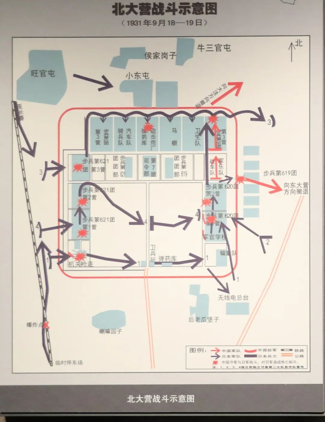 北大营营房旧址位于沈阳九一八历史博物馆东北约5公里处,是九一八事变爆发地,当时为东北军军营所在地。