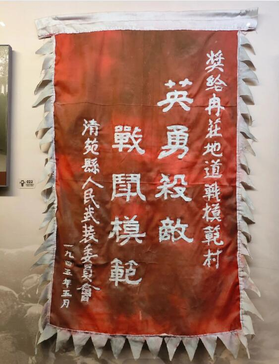 1945年春末夏初的一天,冉庄民兵面对日伪军两个团的兵力,巧妙利用地道展开战斗,以轻伤一人的代价取得胜利。战斗结束后,5月,清苑县人民武装委员会召开庆祝大会,授予冉庄“地道战模范村”光荣称号,并授予一面写有“英勇杀敌 战斗模范”的锦旗。