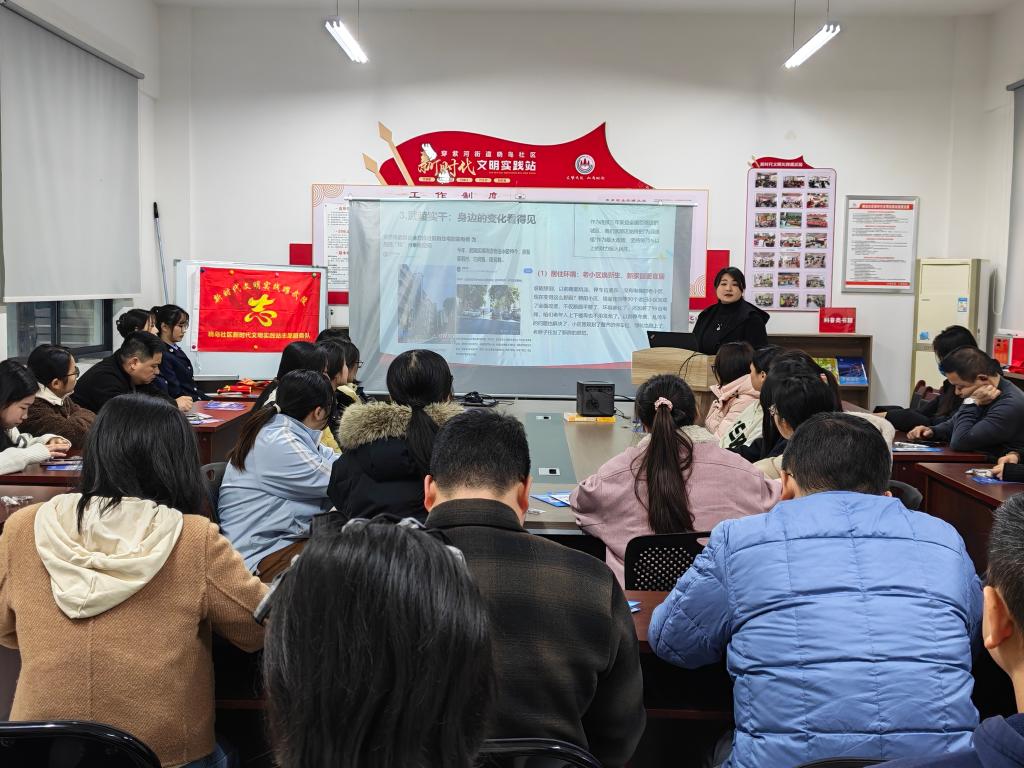 2026年3月5日下午15:00,图书馆一行5人到东江街道浮桥社区与社区党员干部、居民代表共同学习党的二十届四中全会精神,此次学习活动由孙思同志领学。